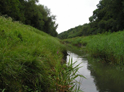 The vegetation includes arable crops, permanent grasslands, and linear riparian vegetation, though space limitations often constrain buffer strip implementation along the watercourse.