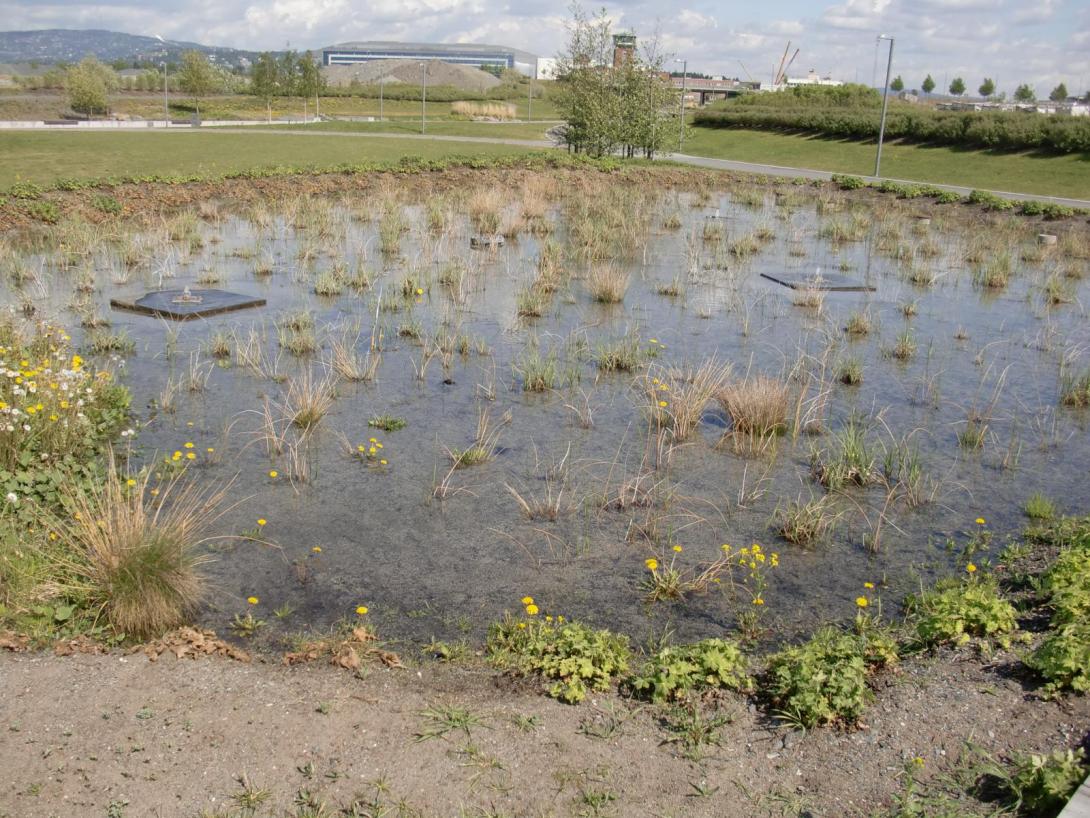 Fornebu provides a model for brownfield redevelopment and shows that sustainable urban drainage systems can be integrated into a multi-functional urban landscape.
