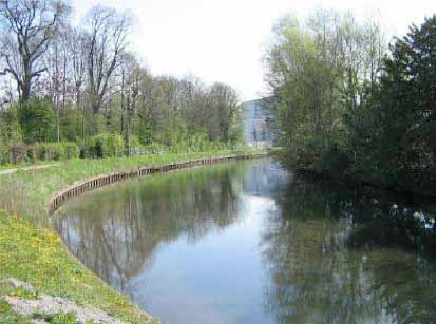 The Scarpe in Arras (long canalised) was renatured (2009–2012) to balance navigation, recreation and ecology. Actions included removal of sheet piling, gentle bank reprofiling, mixed bio-engineering (hemp bundles, vegetated geonets, gabion mattresses where needed), riparian restoration (invasives removal, seeding, pollarded white willows), controlled access, and creation of a lagoon.