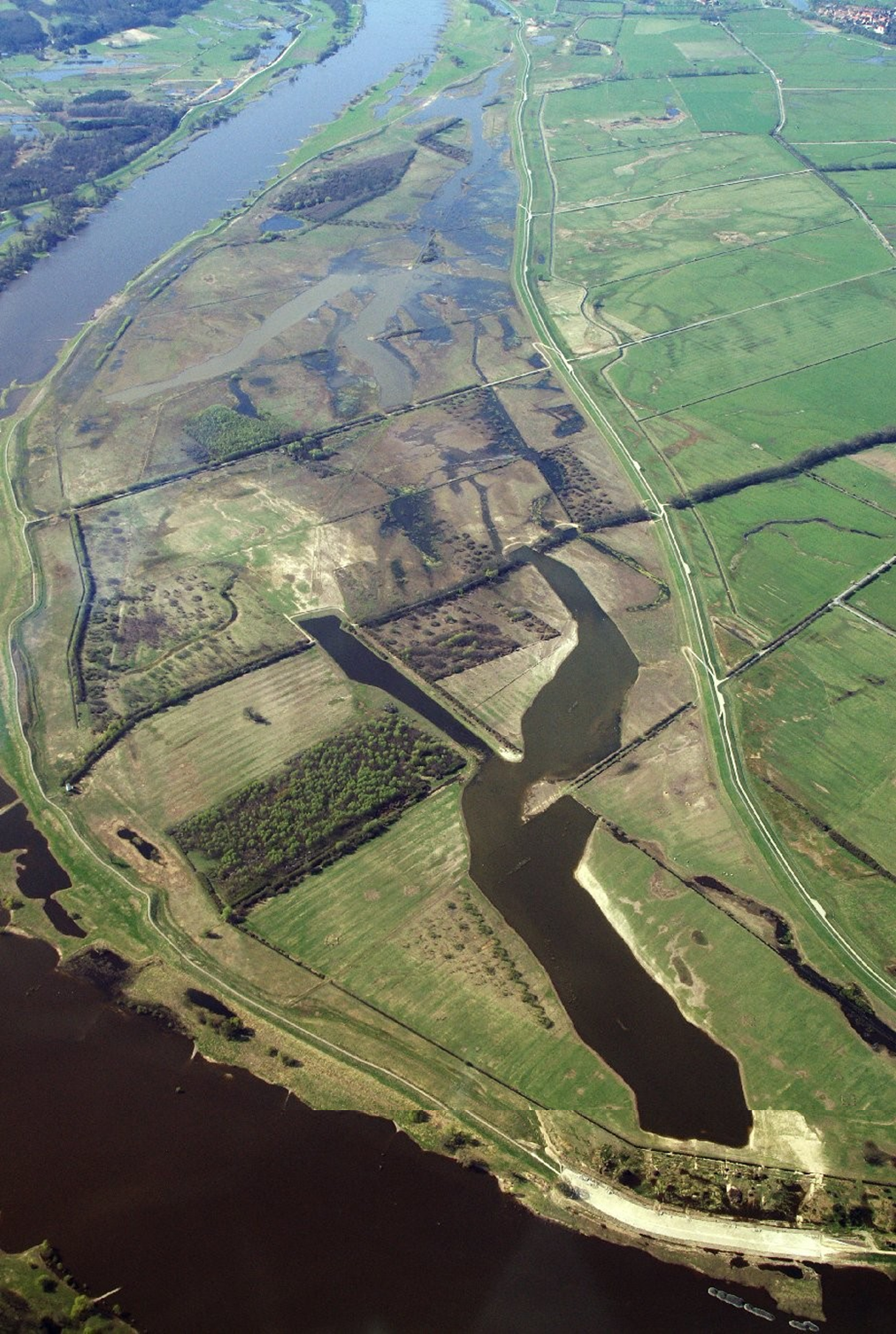 In the framework of the large-scale nature conservation project "Lenzener Elbtalaue", a dyke along the river Elbe (in Germany) has been relocated. This created a new retention area with a diverse floodplain, including alluvial forests, half-open pasture landscapes and other typical habitats of lowland floodplains. With 420 ha it is the biggest application of this type of measure in Germany so far. The project successfully combines flood protection and nature conservation objectives. Since the cutting of the old dyke in 2009, the measure could proof its effectiveness during several high water events.