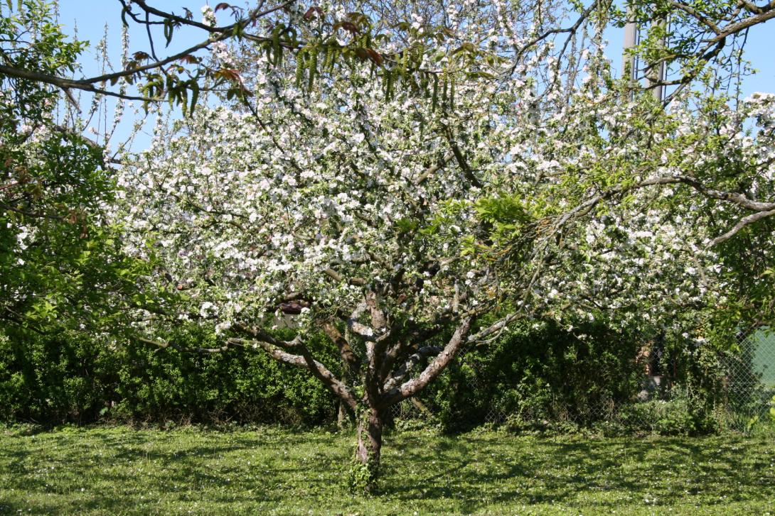 Rich mix of native herbs, grasses, and fruit trees supports pollinators and bird species.