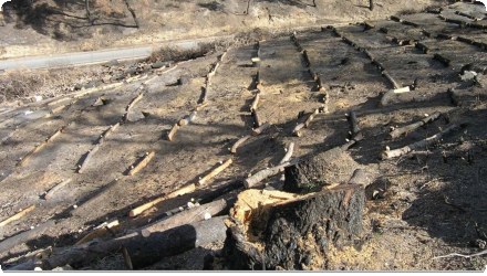 The temporary structures utilizing locally available timber have been designed to reduce the hill slopes thus attenuate the surface runoff as well as the sentiment volume. This measure enables the increase of soil moisture, water absorption, and infiltration. Additionally, it creates suitable sites for natural regeneration or technical afforestation of the burned area.