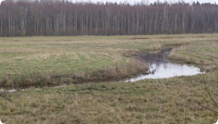 2.1 km long stretch of the channelled river was turned in to 4.6 km long meandered stream. Floodplain meadows restored in 105 ha