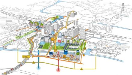 Shift from sewer-conveyance to on-site retention/infiltration; reduced dependency on Amsterdam-Rhine Canal inputs; dual recirculating loops with managed ~0.30 m level variation for storage; major pumps (e.g., 107 m³/min Vleuterweide) move water between sub-catchments; creation of buffer lake (Haarrijnse Plas).