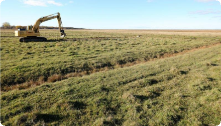 Ditches treated: 12 small ditches, totaling ~3.9 km of ditch network closed/scraped.