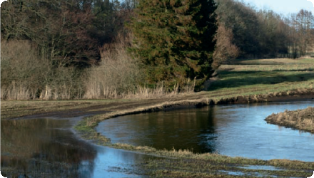 The Odense is a river in southern Denmark. It was channelized and deepened in the late 1940s to improve agriculture. The NWRM consists of a series of measures to restore floodplain connectivity along a 17 km section of the river. The measures will prevent flooding in downstream towns and cities. This will have a number of effects on the pressures relevant for the WFD. Reduced risk for flooding of urban environment reduces the risk for storm overflows from sewers as well as diffuse pollution resulting from flooding in general. Re-meandering reduces the pressure from previous physical alterations for flood protection and agricultural purposes. It will also potentially have a positive effect on ground water recharge in temporarily flooded areas.