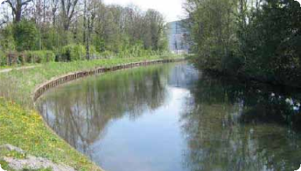 The Scarpe in Arras (long canalised) was renatured (2009–2012) to balance navigation, recreation and ecology. Actions included removal of sheet piling, gentle bank reprofiling, mixed bio-engineering (hemp bundles, vegetated geonets, gabion mattresses where needed), riparian restoration (invasives removal, seeding, pollarded white willows), controlled access, and creation of a lagoon.