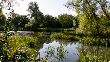 In 2011, three wetland ponds were created at Cardiffsbridge to filter runoff before it reaches the river. These wetlands now support rich wildlife, with planted reeds and sedges thriving alongside naturally colonized species. Dominant plants include common reed, bulrush, and yellow iris, with wetter areas also hosting wild angelica and reed canary grass. Otters and salmon have returned since 2011, indicating better river health.