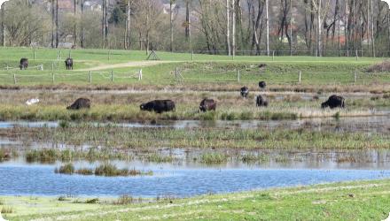 The LIVEDRAVA project, funded by the LIFE programme, transformed 61 ha of former wastewater basins at the Ormož sugar factory into semi-natural wetlands on the Drava River in eastern Slovenia. Since 2017 the site has been legally designated as the Ormož Lagoons Nature Reserve (≈66 ha) and is managed by DOPPS–BirdLife Slovenia under an operational management plan. Management focuses on dynamic water-level control and conservation grazing with water buffalo to maintain open reedbeds and wet meadows. Visitor facilities now include several bird hides built from shipping containers and an educational trail; in 2023 an interpretation centre within the regional “Drava Natura 2000” initiative opened in Ormož. Post-LIFE actions have consolidated the site, including the purchase of adjacent land (1.09 ha) and restoration of additional species-rich grasslands in 2022–2023. The reserve lies within the Mura-Drava-Danube UNESCO Biosphere Reserve and has become an important hub for migratory and breeding wetland species.